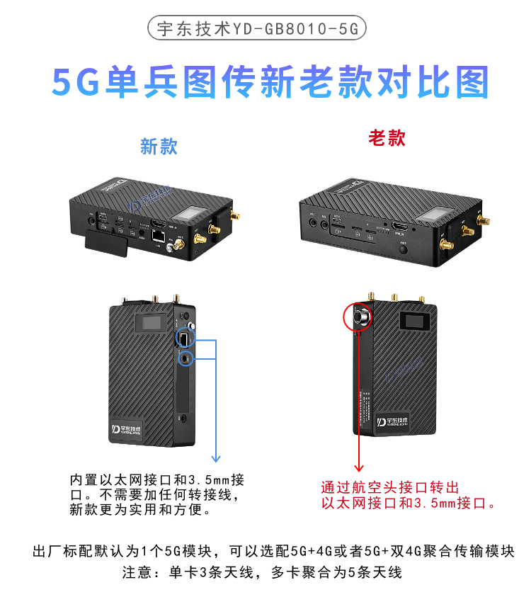 YD-GB8010-5G本款5G單兵圖傳產(chǎn)品為新研發(fā)的,具備不少于兩個(gè)SIM卡槽,同時(shí)支持不少于兩個(gè)不同運(yùn)營商網(wǎng)絡(luò),專門針對自然災(zāi)害,國家消防救援,應(yīng)急通信指揮調(diào)度的新標(biāo)準(zhǔn)而開發(fā),我們的參數(shù)基本完全滿足各種需求,各地方不一樣分單卡和多卡,詳細(xì)資料具體可以聯(lián)系公司業(yè)務(wù)。
