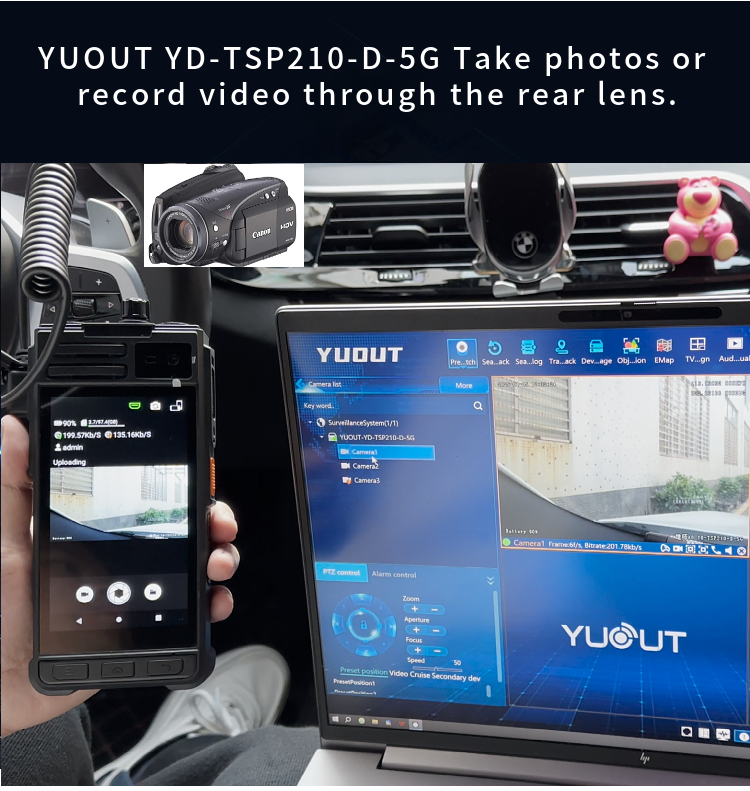 YUOUT YD-TSP210-D-5G is a multi-functional intelligent device with built-in front camera head and rear camera, and supports external HDMI signal source input.  This device supports 5G+4G function, and can remotely view the live video of the staff in other regions or cities in the office/command center (for example, I am now in Shenzhen, China, and can view the re-scene video of the staff in Beijing, China), positioning information and call intercom.  Install mobile SIM card, can also be used as a mobile phone, can make phone calls.  The device is light, easy to carry, and can be hung on the chest and belt.  Mainly used in public security patrol, traffic police, drone remote control HDMI output, DV camera and so on.